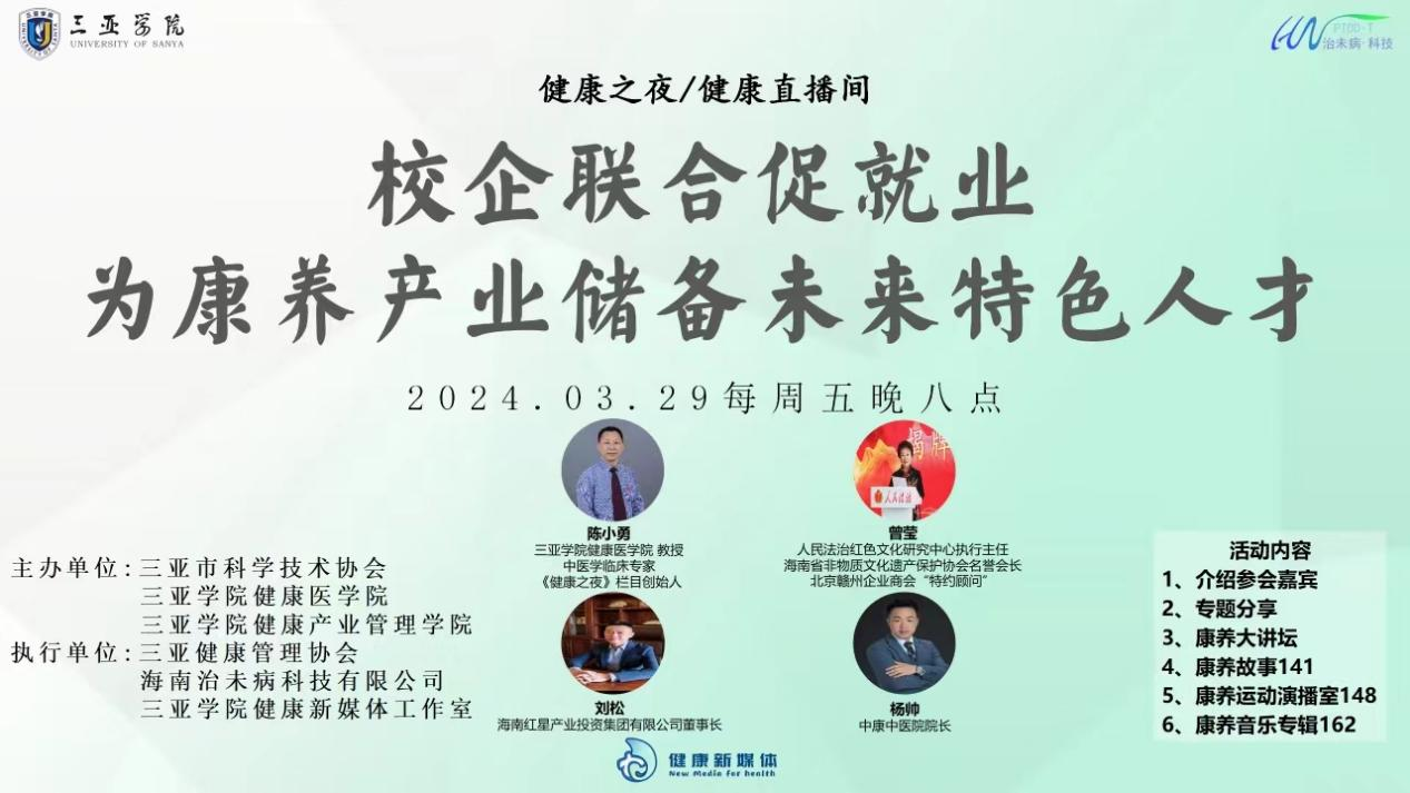 活动当日晚20点健康医学院/健康产业管理学院在线展开了以“校企联合促进就业为健康产业储蓄未来特色人才”为专题的健康之夜活动。此次健康之夜的活动是三方共同推动中医药文化传承与基层医疗服务发展的重要举措,也是对现在乃至未来社会责任的积极回应,更是为学生提供未来的就业指导方向。在不久的将来我们有理由相信在三方的共同带领下未来大健康的发展和特色人才的储备及服务社会的方法方式都会迎来崭新的明天,如图四所示。