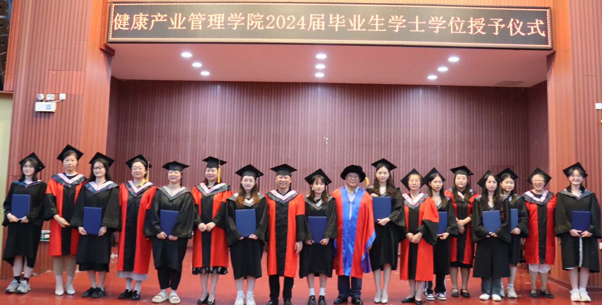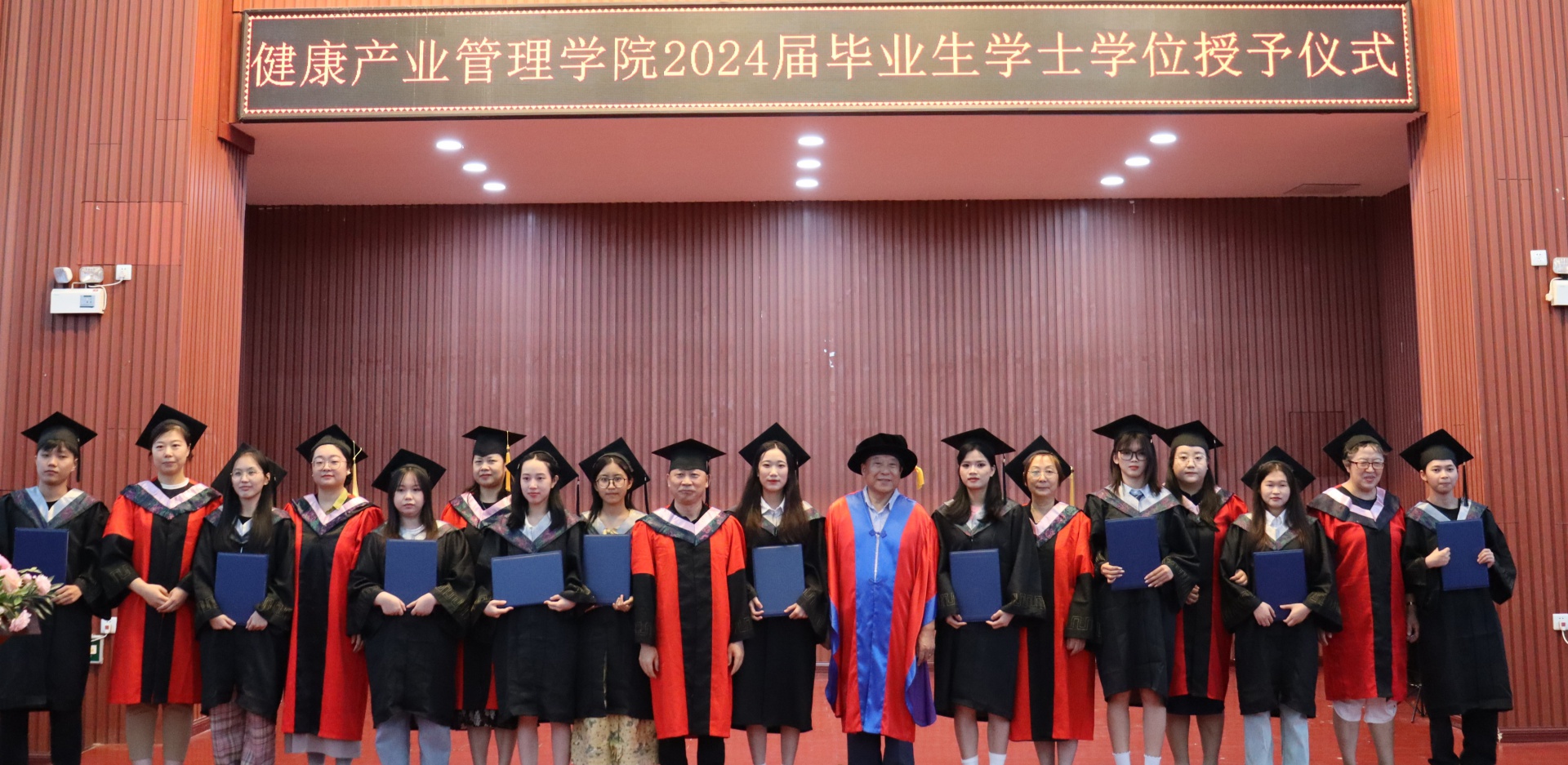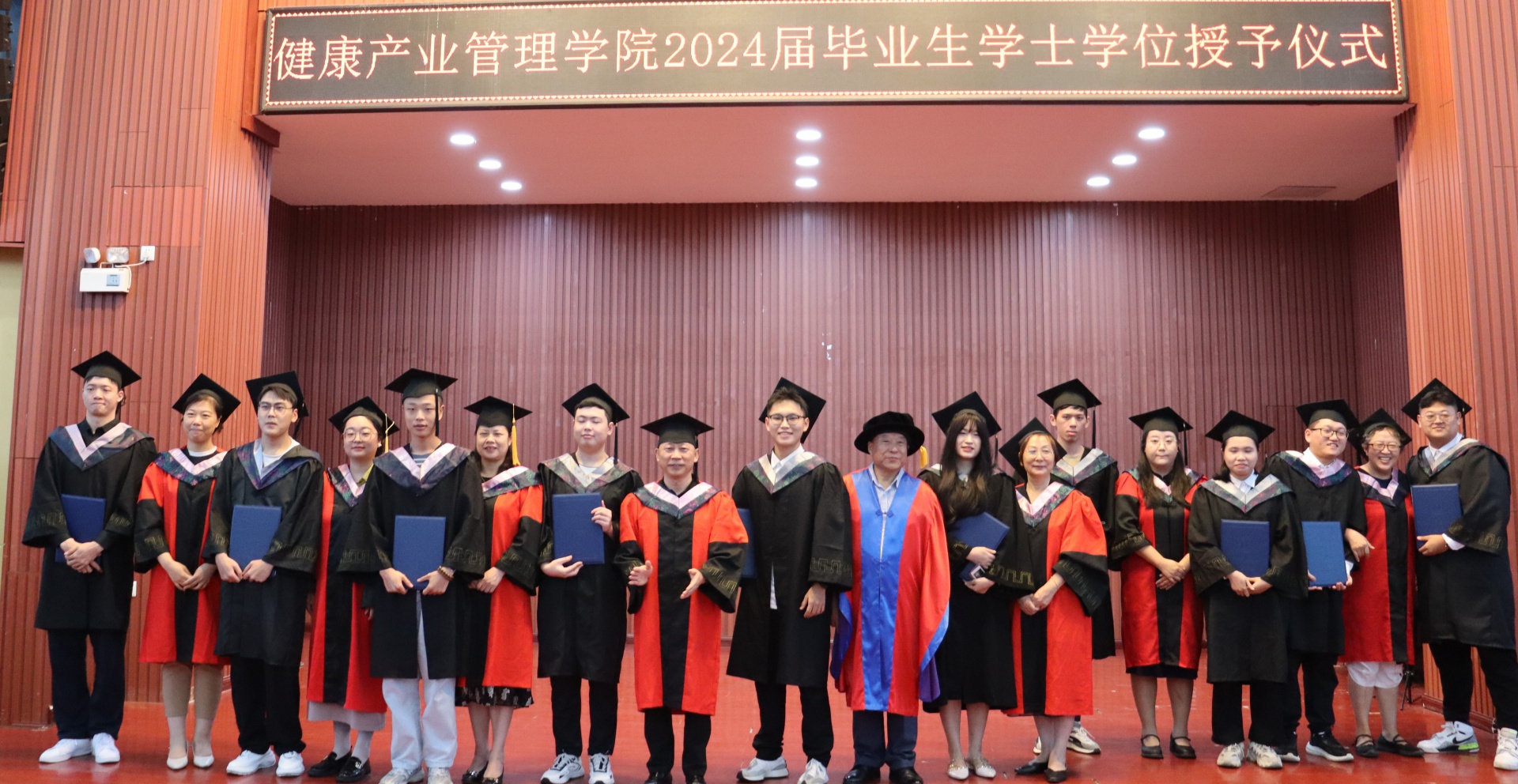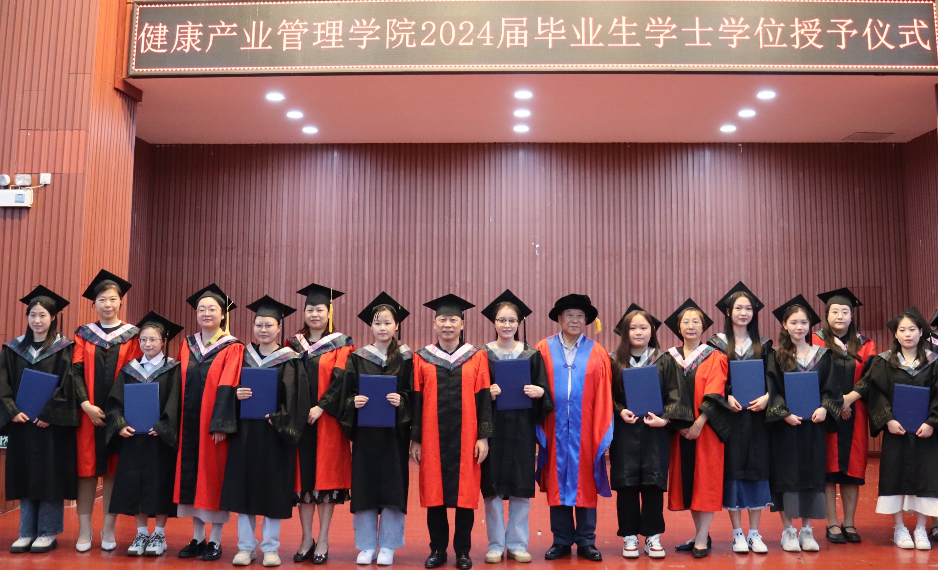 随着夏天的脚步悄然临近,又迎来了一年一度的毕业季。6月2日,健康医学院/健康产业管理学院在三亚学院书会堂举行了2024届毕业生学士学位授予仪式,为即将走向社会的学子们送上了最真挚的祝福和期待。三亚学院领导温春阳、健康医学院/健康产业管理学院教师代表以及全体健康产业管理学院24届毕业生共同出席。仪式开始前,礼堂内已经座无虚席,大家怀着激动的心情等待着这一重要时刻的到来。2024届毕业生代表护理2002班刘一阳同学以一首《那些年》歌曲点燃了全场氛围,2024届毕业生学士学位授予仪式正式开始了。