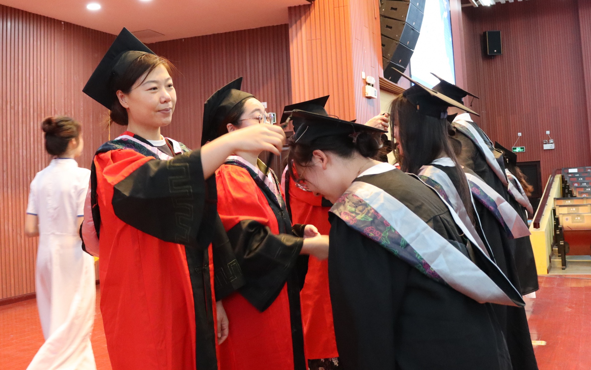 在拨穗仪式中,老师们轻轻地将毕业生们学士帽上的流苏从右边移到左边,这一变化寓意着毕业生们已经准备好展翅高飞,迎接新的生活挑战和机遇;也寓意着学校向毕业生们传达了对其学术成就的认可,激励他们在未来生活和工作中继续追求卓越,不断学习和进步。