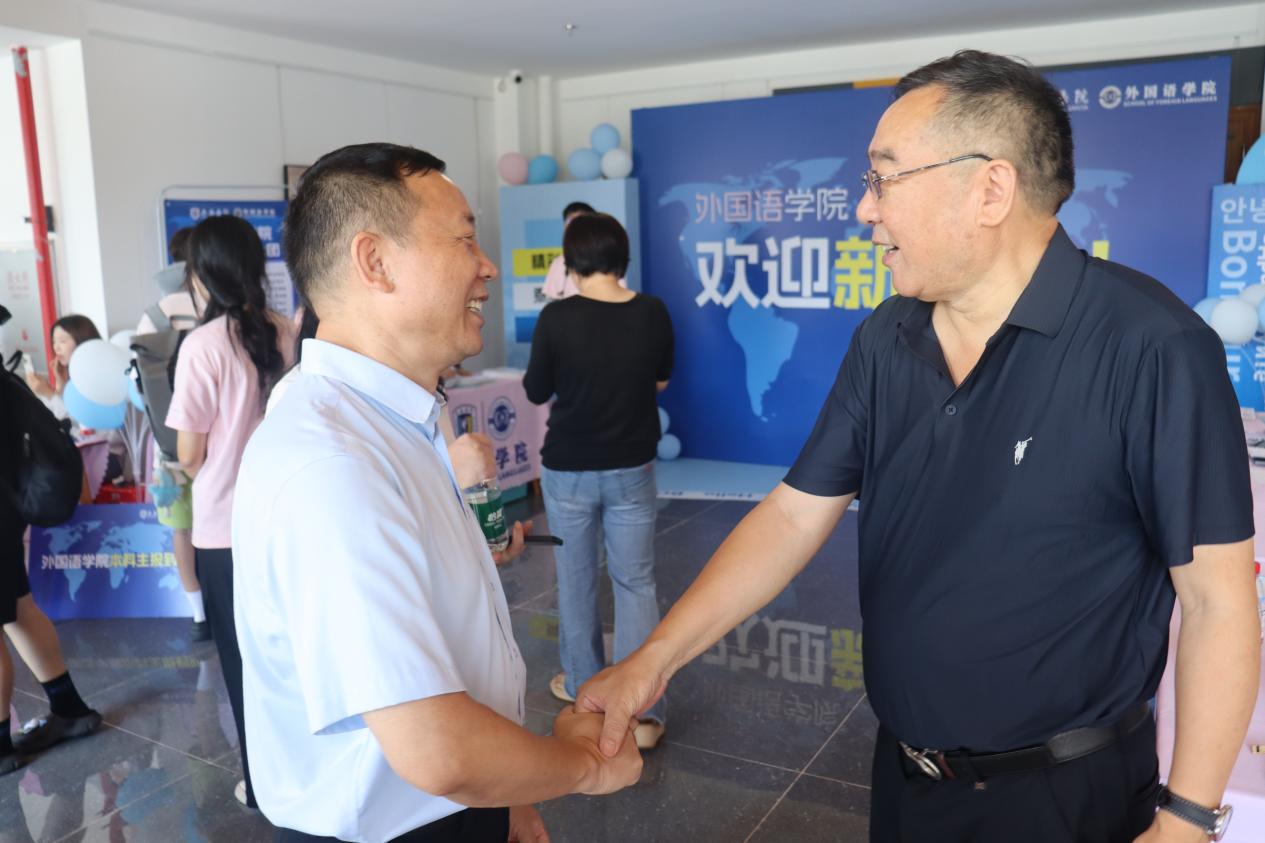 校长沈建勇一行来到健康产业管理学院迎新现场,瞬间点燃了现场的热烈氛围。校领导微笑着与新生们挥手致意,关切地询问他们的报到进展、是否需要帮助。同时,还与在场的志愿者和教师们亲切攀谈,了解迎新工作细节,整个现场充满了温馨融洽的气息。一位新生表示:“校领导、院领导和老师们都很亲切,校园环境很美很大,我开始期待我的大学生活啦!”