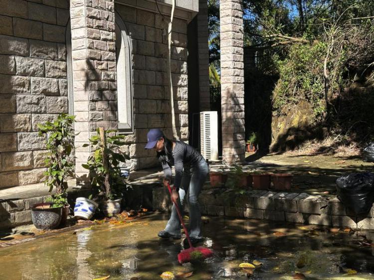 (李娟老师、王文娟老师清扫宿舍区域和实验室外积水)