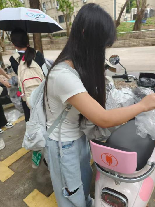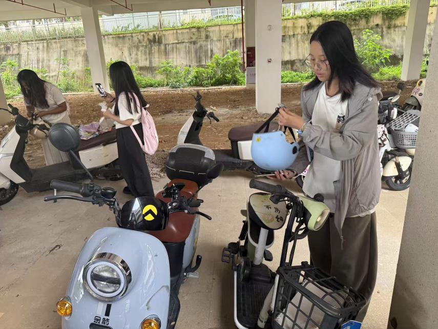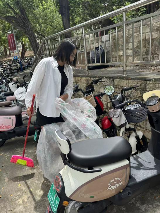 (李静茹老师、李卉妍老师、王心蕊老师清理电动车)