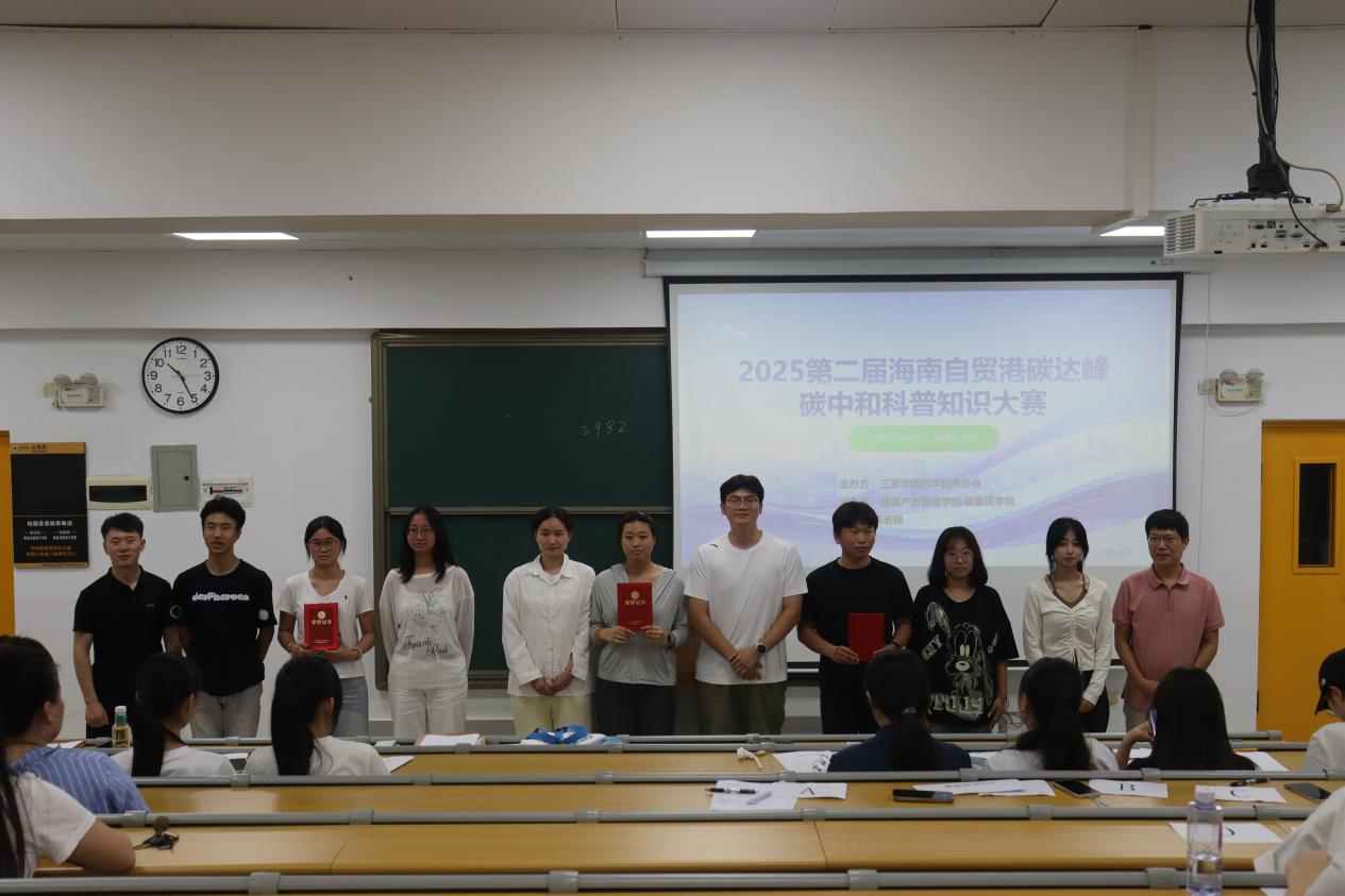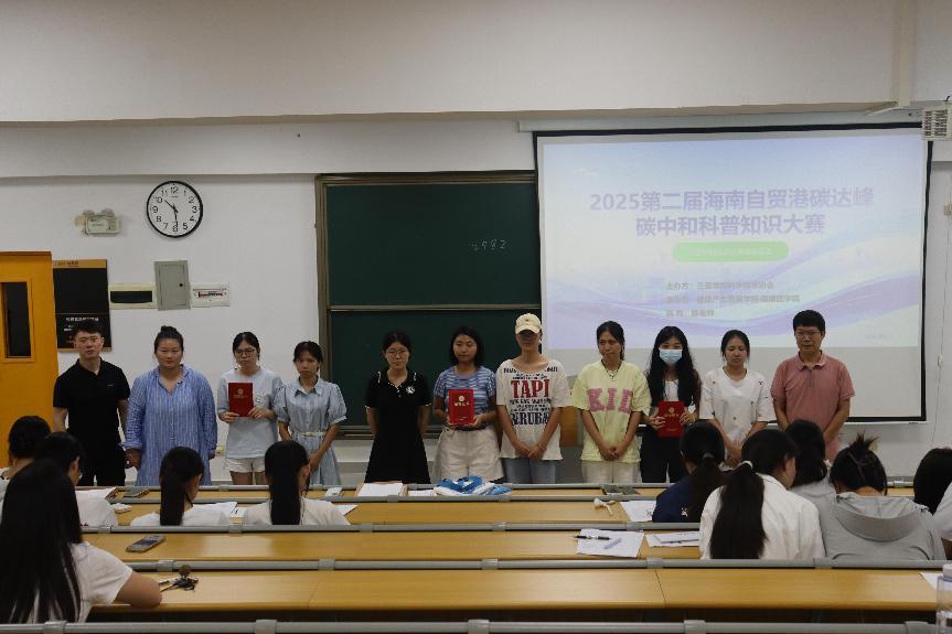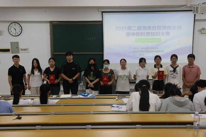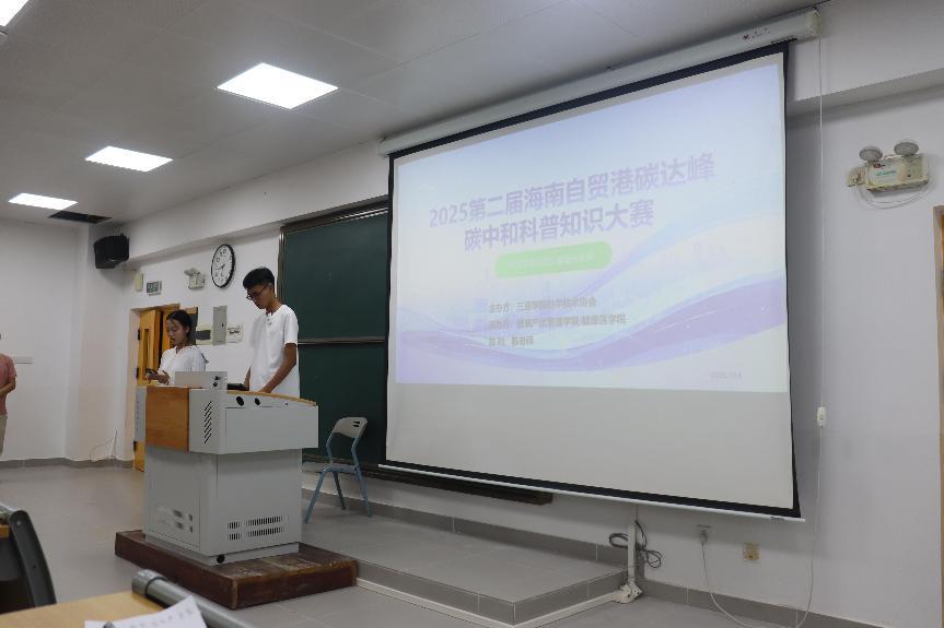 为深入贯彻国家“双碳”战略,助力海南自贸港绿色低碳发展与生态文明建设 ,由三亚学院科学技术协会主办,三亚学院健康医学院/健康产业管理学院、庄峰锋一带一学生团队联合承办的第二届海南自贸港碳达峰碳中和科普比赛三亚学院校赛,在2025年10月8日晚8:30书知楼2201正式开赛,以青春之声传递绿色理念,为全校师生搭建起“双碳”知识交流与创新展示的平台 。