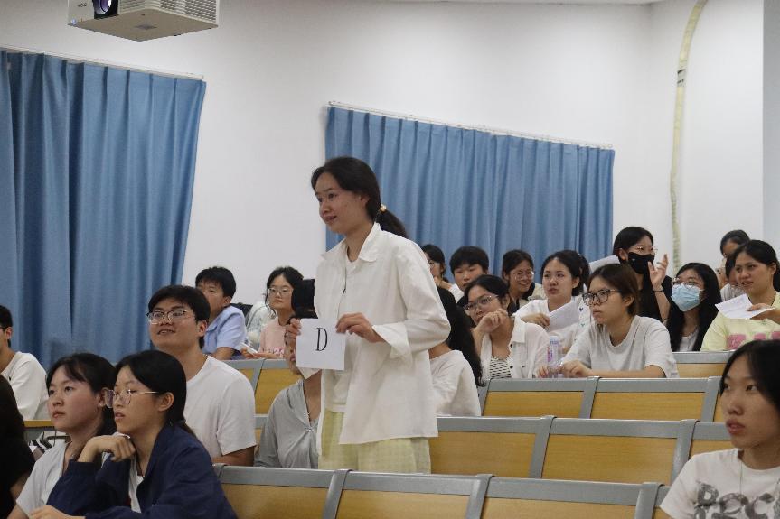 知识竞赛现场氛围持续升温,各环节亮点纷呈。笔试环节,赛场寂静,选手们凝神作答,纸页翻动声格外清晰;必答题环节,队伍快速讨论、踊跃应答,紧张又热烈。最激动的抢答题环节,选手们以手机为抢答器,指令一出便眼疾手快争相抢答,思维交锋激烈。中场休息时,主持人公布笔试成绩,陈老师还特意延长休息时间并揭晓必答题得分,舒缓节奏。最终比赛进入加赛环节,终极角逐更显扣人心弦。