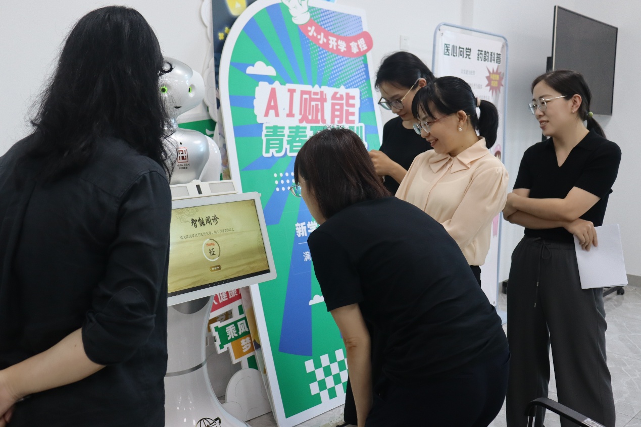 会上,老师们探索AI智能机器人赋能中医诊疗活动现场,聚焦AI在中医诊疗中的应用实践:通过操作智能机器人完成舌诊、脉诊数据采集,借助其内置中医理论模型快速获取辨证建议,辅助拟定体质辨识与调理方案。这一尝试既展现了AI对中医诊疗标准化、高效化的助力,也为后续学科教学与实践创新提供了“传统中医+智能技术”的融合新思路。
