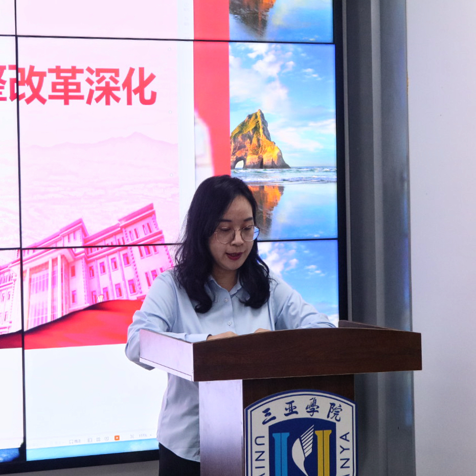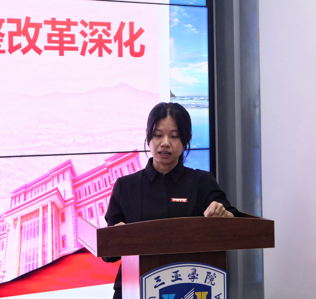随后,健康产业管理学院学院院长陈小勇、党总支副书记李卉妍率先领学,围绕办学结构性改革深化的整体定位,传达第一阶段学习核心精神,帮助教职工把握改革总方向。在全员深度学习环节,学院全体教职工共同学习了《李书福董事长在2025级新生开学典礼上的讲话视频》《理事长在吉利院校会议上的讲话学习稿件》《三亚学院办学结构性调整改革深化学习工作方案》等关键文件,从改革要求、督查标准到工作部署,全方位确保全员吃透文件精神。