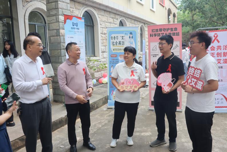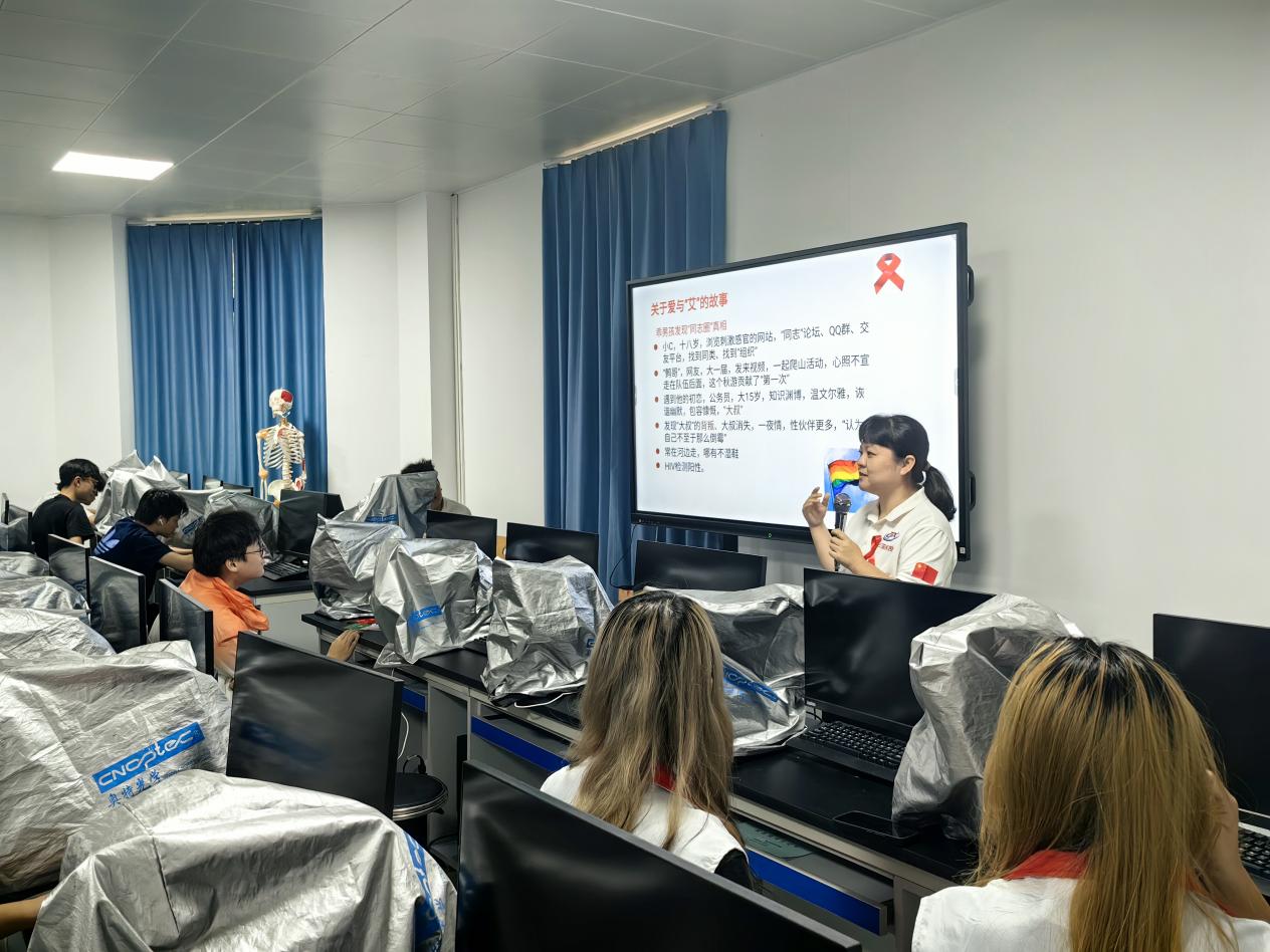 本次活动的亮点之一,是专门设置的“防艾知识讲座区”。陈茜科长亲临实验室301教室,为同学们带来了一场权威、前沿的艾滋病防治核心知识讲座。凭借其丰富的一线防控经验,陈茜科长从艾滋病的病原学、传播途径、流行现状等基础内容,深入浅出地讲解了防控关键点,并重点介绍了“检测不到=不传染”(U=U)这一消除歧视的核心科学知识,以及暴露前预防(PrEP)和暴露后阻断(PEP)等最新预防策略。讲座内容翔实、科学严谨,紧密结合大学生活实际,引发了在场学生的浓厚兴趣与热烈提问,为后续的闯关活动奠定了坚实的知识基础。