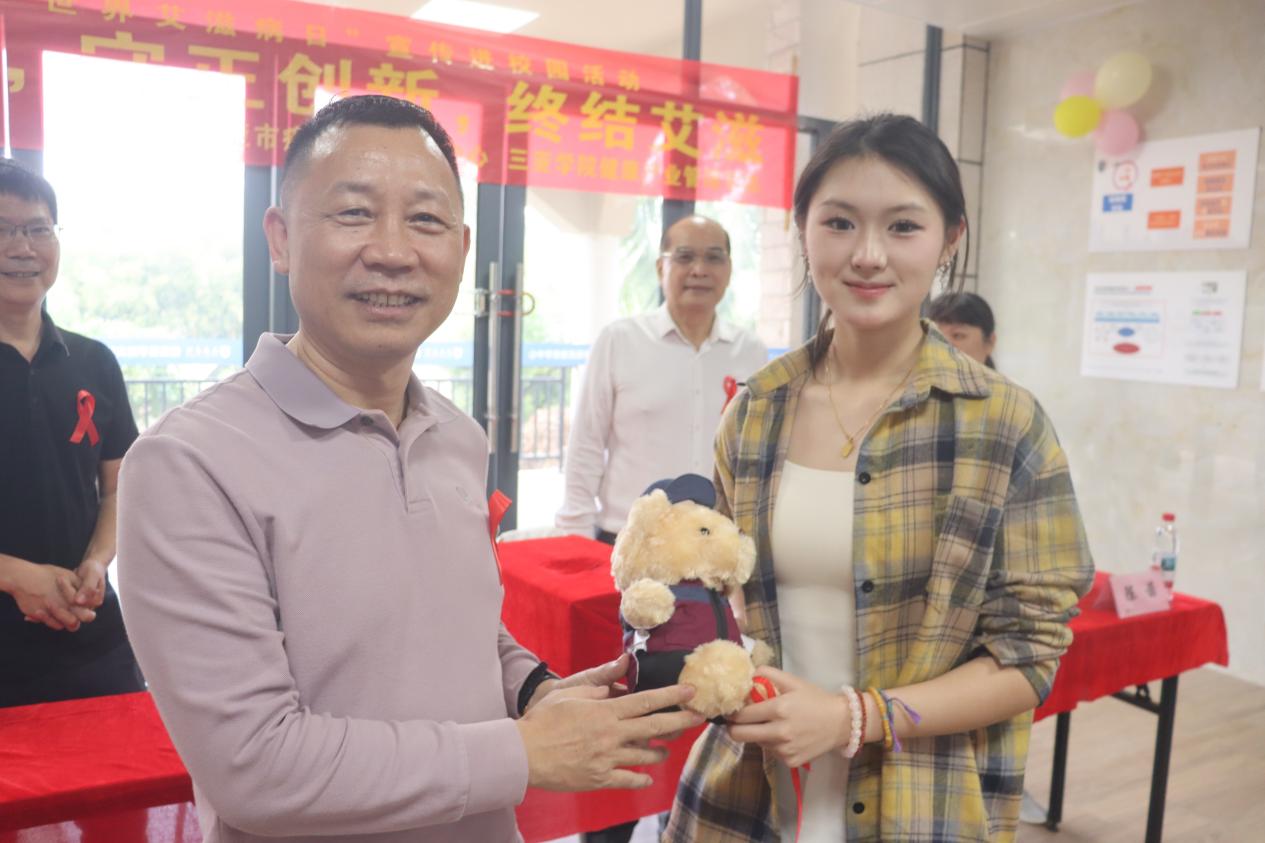 三亚市疾病预防控制中心党总支副书记李朝勇随后从专业防控角度致辞。他指出,终结艾滋病流行需要全社会共同努力,高校青年是这场战役中不可或缺的力量。他充分肯定了三亚学院在健康教育与产教融合方面所做的努力,并希望以此次活动为契机,进一步深化“社会共治”的协作模式。
