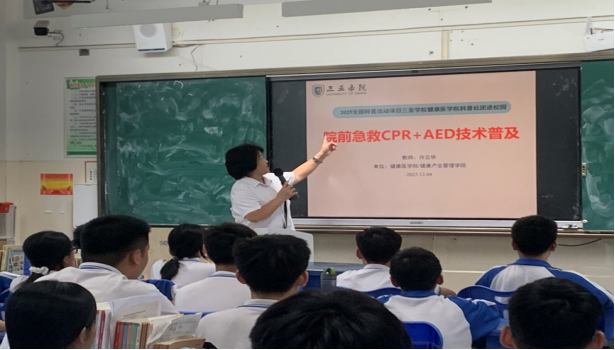 12月4日下午,在三亚市科学技术协会的指导与支持下,三亚学院健康医学院/健康产业管理学院许立华教授带领学生李佳萱、杨紫尧走进三亚市第三中学,开展了一场生动实用的应急救护科普宣讲活动。