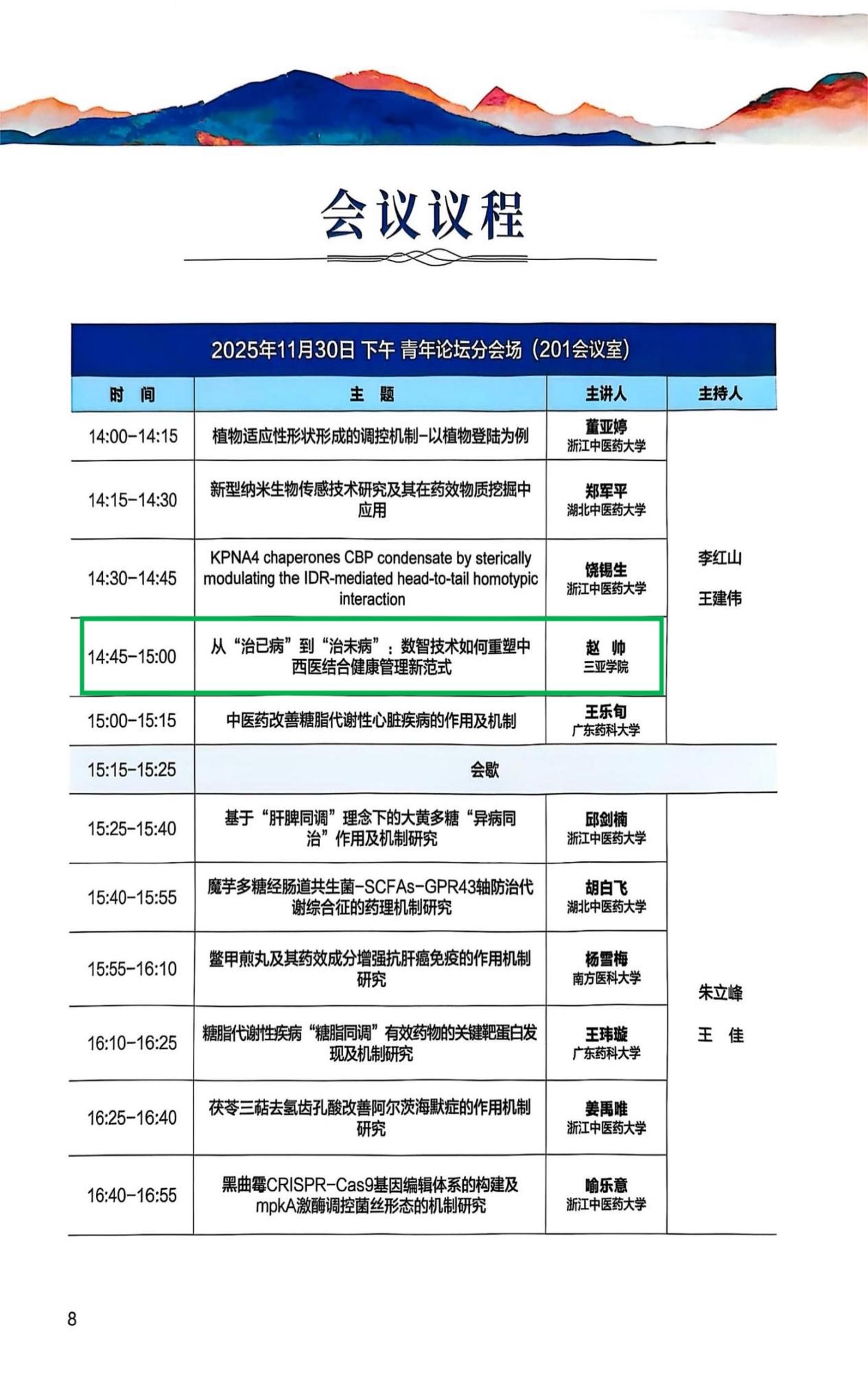 三亚学院健康医学院/健康产业管理学院康复治疗学专业赵帅老师应邀参会,并在青年论坛环节作了题为《从“治已病”到“治未病”:数智技术如何重塑中西医结合健康管理新范式》的专题报告。