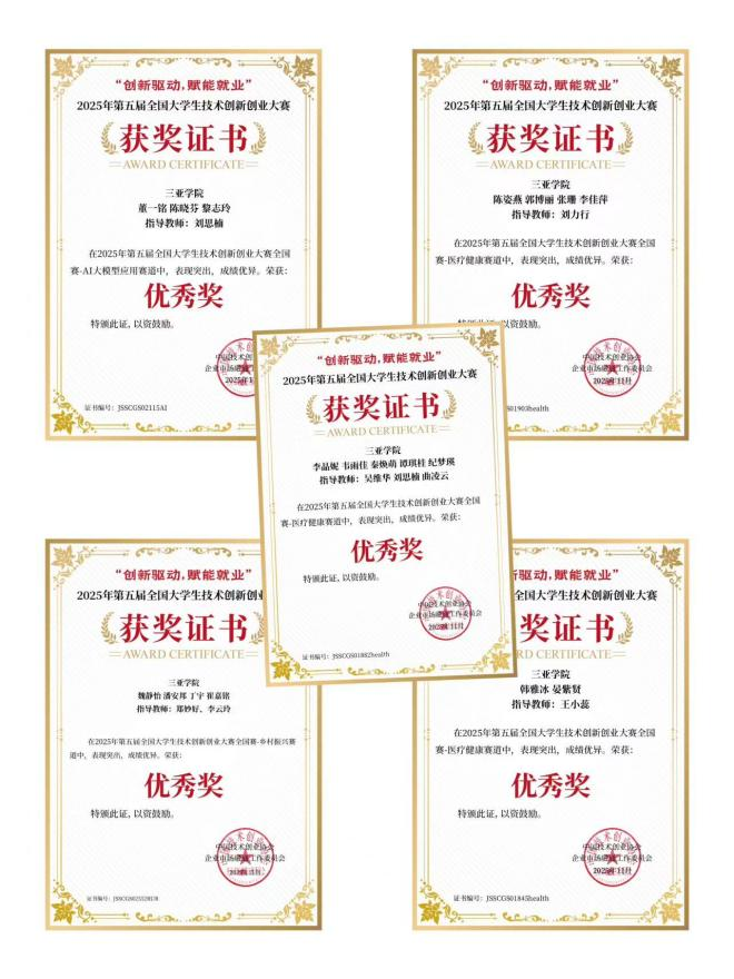 2025年12月1日,在刚刚落幕的第五届全国大学生技术创新创业大赛中,三亚学院健康医学院/健康产业管理学院派出的58支参赛队伍中,有43支队伍成功获奖,其中包括二等奖6项、三等奖22项、优秀奖15项,展现了学院项目制教学的显著成效。