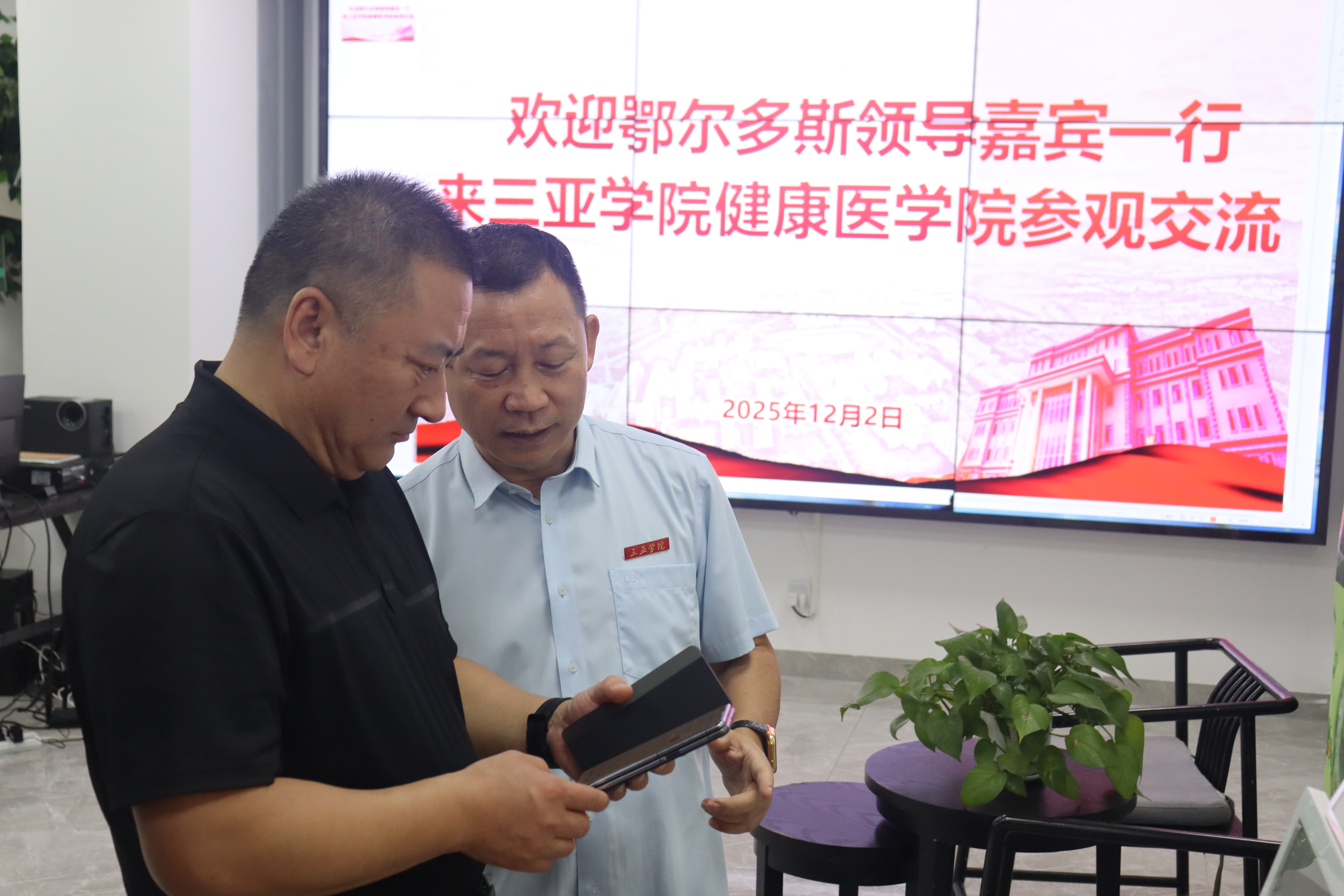2025年12月2日15时,鄂尔多斯市考察团一行莅临三亚学院交流访问,三亚学院健康医学院/健康产业管理学院陈小勇院长全程陪同。考察团成员包括鄂尔多斯市卫生健康委员会办公室主任杨海生、鄂尔多斯市达拉特旗人民医院主任医师黄永君,以及深耕当地党政管理、纪检监察、人事管理等多领域工作的赵瑞同志。双方围绕康养服务体系建设、产学研融合等核心议题,开展深度交流研讨,就潜在合作方向达成初步共识。