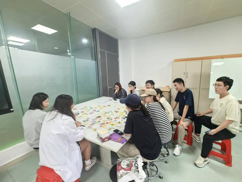 随后的“主题共创”环节将活动氛围推向高潮,这也是T模块中“团队协作与创新实践”模块的关键载体。同学们以OH卡为故事起点,围绕“康复创业”的核心主题,分组共同编织未来的服务场景与项目蓝图。在集体的叙事与头脑风暴中,同学们彼此启发、互补思路,许多兼具专业性与可行性的初步项目构思,在愉快的交流中悄然成形。