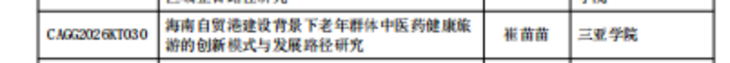 根据学会发布的立项公告,六位教师的立项课题均紧密结合海南作为自由贸易港和长寿岛的区位优势,聚焦本土老龄事业发展和医养结合实践。研究内容涵盖中医药健康旅游、中医“治未病”理念推广、长者食堂服务模式、养生保健产业与慢性病防控协同、气候康养产业发展以及旅居康养健康服务体系等多个方向。这些选题既回应了国家积极应对人口老龄化的战略需求,又深深扎根于海南自贸港的建设热土,体现了鲜明的地方特色和现实关怀。